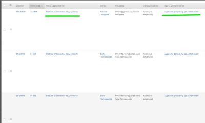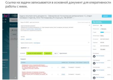 Ссылка на задачи записывается в основной документ для оперативности работы с ними.