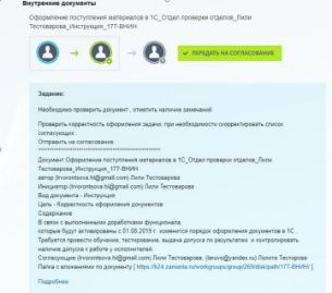 Так же и задача для работы над документом после согласования.