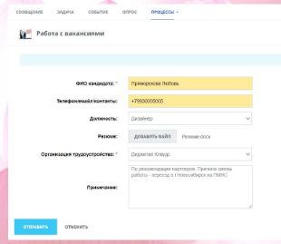 Работа с вакансиями, учет кандидатов.